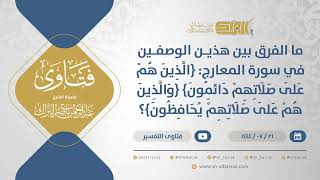 احسن الله اليكم يقول السائل في سورة المعارج قال تعالى الا المصلين الذين هم على صلاتهم دائمون ثم ذكر عددا من الاوصاف ثم قال والذين هم على صلاتهم يحافظون فما الفرق بين الوصفين - 00:00:00ضَ