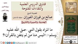 ما المراد بقول النبي –صلى الله عليه وسلم «ليس منا من لم يتغن بالقرآن»؟ للشيخ الفوزان