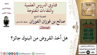 وهذا سائل يقول احسن الله اليكم هل اخذ القروض من البنوك جائز؟ القروض الحسنة جائزة من البنوك وغيرها لما فيها فائدة استثمار يعني قرض تقضي لازمك وترد بدله من غير زيادة - 00:00:00ضَ