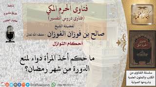 ما حكم أخذ المرأة دواء لمنع الدورة الشهرية في شهر رمضان؟ للشيخ صالح الفوزان