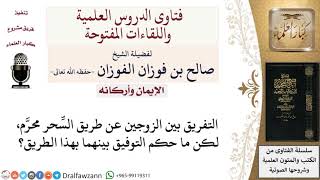 يقول السائل التفريق بين الزوجين عن طريق السحر محرم. لكن ما حكم التوفيق بينهما بهذا الطريق سحر كله سحر الصرف والعطف كله سحر فلا يجوز استعمال السحر لا للجمع بين الزوجين ولا للتفريق بين الزوجين. نعم - 00:00:00ضَ