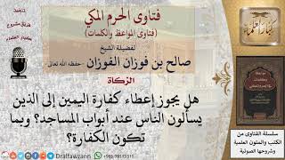 يقول السائل هل يجوز اعطاء كفارة اليمين الى الذين يسألون الناس عند ابواب المساجد وبما تكون الكفارة يجوز اعطاء السائل اعطاءه الكفارة وغيرها لكن كونك تتأكد من حاجة المحتاج احوط لك واحسن - 00:00:00ضَ