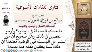 احسن الله اليكم صاحب الفضيلة وهذا سائل يقول ما حكم البسملة في الوضوء؟ وارجو التفصيل في ذلك وهل صحيح ان من استمر على البسملة في قبل الوضوء معتقدا ان ذلك سنة. يكون فعله هذا بدعة - 00:00:00ضَ