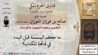 ما حكم البسملة قبل البدء في فاتحة الكتاب سنة البسملة في بدايات السور الفاتحة او غيرها سنة الا براءة لا تبدأ ببسم الله وما عداها من السور فالسنة انه تبدأ ببسم الله الرحمن الرحيم - 00:00:00ضَ