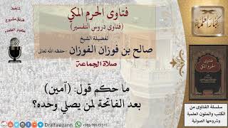 ما حكم قول امين بعد الفاتحة لمن يصلي وحده مستحب مستحب للامام والمأمومين وللمنفرد اذا فرغ من الفاتحة ان يقول امين. لان معناه اللهم استجب لان الفاتحة دعاء الفاتحة كلها دعاء اولها دعاء عبادة وهو الثناء على الله جل وعلا - 00:00:00ضَ