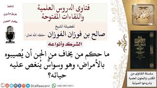 ما حكم من يخاف من الجن ان يصيبوه بالامراض وهو وسواس ينغص عليه حياته استعيذ بالله من من الجن يستعيذ بالله من الشياطين استعيذ بالله من الاشرار ويذهب عنه ان شاء الله نعم - 00:00:00ضَ