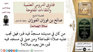 ما حكم الصلاة في مسجد به قبر؟ وهل من صلى فيه يعيد صلاته؟ للشيخ صالح الفوزان
