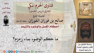 ما حكم الوضوء بماء زمزم لا بأس بالوضوء بماء زمزم لكن يكره الاستنجاء به تنجى به وهو غسل الفرج بماء زمزم مكروه لانه ماء شريف لا ينبغي انه يمتهن في - 00:00:00ضَ
