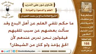 كعلم اللغة العربية في النحو صرف بلاغة ونحو ذلك واما ان يتلقى العلم عن الفساق علم احكام الشريعة فلا يجوز لانهم انما يذكرون له ما لا يخالف فسقهم والعياذ بالله - 00:00:37ضَ