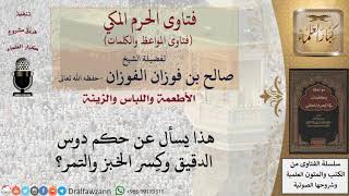 هذا يسأل عن حكم دوس الدقيق وكسر الخبز والتمر لا يجوز هذا النعمة تحترم وقر وتؤخذ وترفع تعطى للبهايم او من يأكلها او توضع في مكان توضع في مكان بعيد عن دوس الاقدام وعن - 00:00:00ضَ
