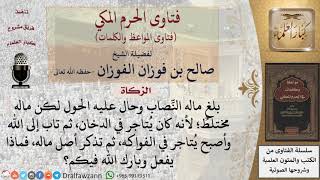يقول السائل بلغ نصابه من بلغ ما له النصاب وحال عليه الحول لكن لكن ما له مختلط لانه كان يتاجر في الدخان ثم تاب الى الله واصبح يتاجر في الفواكه. ثم تذكر اصل ماله فماذا يفعل؟ وبارك الله فيكم - 00:00:00ضَ