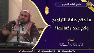 ان ان العدد فيها مفتوح لكن الاقتصار على احدى عشرة هو الاقرب للسنة. ولكن لو صلاها ركعة ركعتين مثنى مثنى وزادت على الاحدى عشر فلا بأس لكن الافضل ان يقتصر الانسان على احدى عشرة لان هذا غالب هديه - 00:00:56ضَ