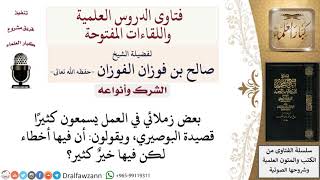 يقول السائل بعض زملائي في العمل يسمعون كثيرا قصيدة البوصيري ويقولون ان فيها اخطاء لكن فيها خير كثير. ما فيها خير كذابين ما فيها فيها الشرك الاكبر والعياذ بالله وين الخير اللي فيها - 00:00:00ضَ