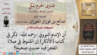 هذا يقول ان الامام النووي رحمه الله ذكر في كتاب الاذكار ان القنوت في صلاة الفجر في حديث صحيح لا الحديث ما هو بصحيح حديث ان الرسول قنت في وقت النوازل هذا صحيح - 00:00:00ضَ