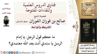 ما حكم قول الرجل يا إمام الرسل يا سندي أنت بعد الله معتمدي؟ لمعالي الشيخ صالح الفوزان
