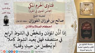 وهذا سائل يقول اذا اذن المؤذن وشخص في الشوط الرابع في منتصفه فهل يعيد الشوط كاملا ام يكمل من حيث وقف اذا اذن المؤذن فيه فرصة انه انه يكمل طوافه قبل الاقامة - 00:00:01ضَ
