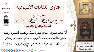 احسن الله اليكم صاحب الفضيلة وهذا السائل يقول انا شاب عمري احدى عشرة سنة وذهبت للعمرة وعند طواف بالبيت لاشرب الماء ثم رجعت من مكان غير المكان الذي خرجت منه. فهل علي في طواف ذلك شيء؟ ايش؟ يقول انا شاب عمري احدى - 00:00:00ضَ