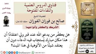 يقول فضيلة الشيخ وفقكم الله هل يكفر من يدعو الله عند قبر ولي اعتقادا ان هذا مكان مبارك يستجاب فيه الدعاء دون ان يعتقد شيئا من الالوهية في هذا الميت - 00:00:00ضَ