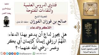 ما حكم هذا الدعاء اللهم ارزقني إيمانًا كإيمان أبي بكر وعمر –رضي الله عنهما ؟ للشيخ صالح الفوزان