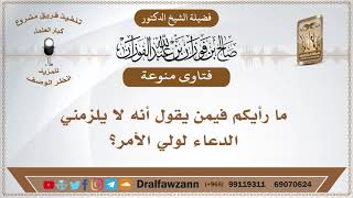 ما رأيكم فيمن يقول أنه لا يلزمني الدعاء لولي الأمر؟ - الشيخ صالح الفوزان
