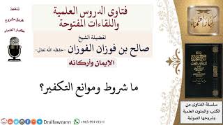 ما شروط وموانع التكفير تكفير ما ما ينبغي ان انه يكون على السنة الناس وعلى تكفير انما يكون لاهل العلم والبصيرة هم الذين يتولون هذا نعم واما عامة الناس طلبة العلم غير المتمكنين والمبتدئين - 00:00:00ضَ