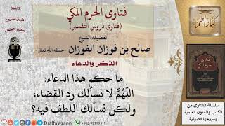 ما صحة قول الداعي اللهم لا نسألك رد القضاء، ولكن نسألك اللطف فيه؟ للشيخ الفوزان