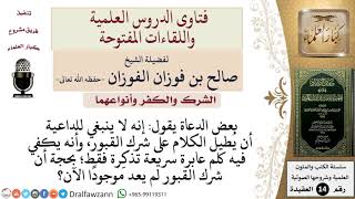 ما صحة قول القائل إنه لا ينبغي للداعية أن يُطيل الكلام على شرك القبور؟ للشيخ صالح الفوزان