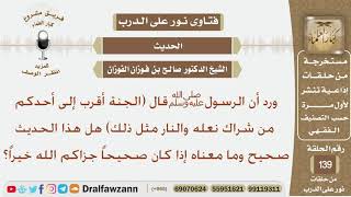ما معنى الحديث (الجنة أقرب إلى أحدكم من شراك نعله...)؟ الشيخ صالح بن فوزان الفوزان