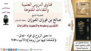 ما معنى الروح في قوله تعالى ﴿فنفخنا فيها من روحنا﴾الأنبياء91؟ لمعالي الشيخ صالح الفوزان