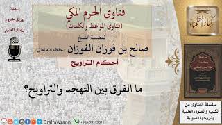 يقول السائل ما الفرق بين التهجد والتراويح لا فرق بينهما لكن تهجد يقسم تهجد في العشر الاواخر يقسم قسمين قسم في اول الليل وهو التراويح وقسم في اخر الليل وهو التهجد - 00:00:00ضَ