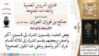 وهذا سائل يقول بعض العلماء يقسمون الشرك الى قسمين اكبر واصغر وبعضهم يقسم الشرك الى ثلاثة اقسام. شرك اكبر واصغر وخفي. فما القول الصحيح الخفي من الاصغر الاصغر على قسمين - 00:00:00ضَ