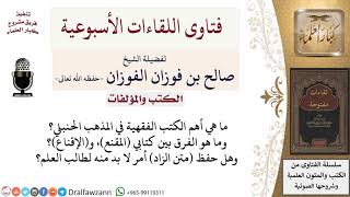 احسن الله اليكم صاحب الفضيلة هذا سائل يقول ما هي اهم الكتب الفقهية في المذهب الحنبلي؟ وما هو الفرق بين كتابي المقنع والاقناع ما هي الكتب ايه؟ اهم الكتب الفقهية في المذهب الحنبلي. نعم. وما هو الفرق بين المقنع والاقناع - 00:00:00ضَ