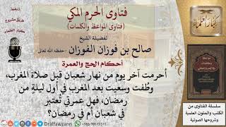 يقول السائل احرمت اخر يوم من نهار شعبان قبل صلاة المغرب وطفت وسعيت بعد المغرب في اول ليلة من رمضان فهل عمرتي تعتبر في شعبان؟ ام في رمضان هذي مشتركة بين شعبان ورمضان بعظه في شعبان وهو الاحرام - 00:00:00ضَ