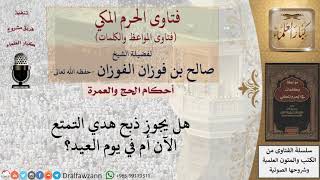 يجوز ذبح هذه التمتع هدي التمتع لا يحل ذبحه الا في يوم العيد او ثلاثة الايام التي بعد يوم العيد اما قبل يوم العيد فلا يجوز ولا يجزي لا يجزي ذبح الهدي قبل يوم العيد - 00:00:00ضَ