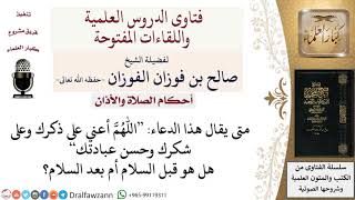 متى يقال دعاء اللهم أعني على ذكرك وشكرك وحسن عبادتك قبل السلام أم بعده؟ لمعالي الشيخ صالح الفوزان