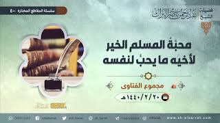 خير ما يحبه لنفسه. الله اكبر. فمن كان قائما هذا حديث عظيم شقيل حتى يحب لاخيه ما يحب لنفسه هذا لا لا يقوم به الا الافذاذ ذو الهمم العالية رجل الايمان الصادق - 00:00:20ضَ