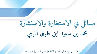 يوما وان كنت من اهل المشهورات فالعين تلقى كفاحا منأ ودنا ولا ترى نفسها الا مرآتي. ويستحب الجمع بين الاستخارة والاستشارة. وقد اختلف العلماء هل يقدم الاستخارة او الاستشارة؟ والامر في - 00:08:47ضَ