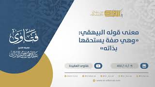 احسن الله اليكم يقول السائل ما معنى قول البيهقي رحمه الله عقب ذكره لمعنى بعض الصفات وهي صفة يستحقها بذاته. يعني انها من لوازم ذاته يعني انها صفات ذاتية - 00:00:00ضَ