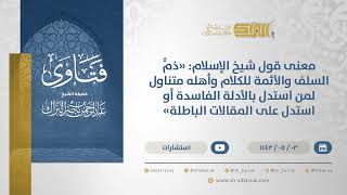 احسن الله اليكم يقول السائل قول الشيخ الاسلام في كتاب العقل والنقل فيما نقه الشيخ ابن السعدي ذم السلف والائمة للكلام واهله متناول لمن استدل بالادلة الفاسدة او استدل المقالات في الباطلة - 00:00:00ضَ