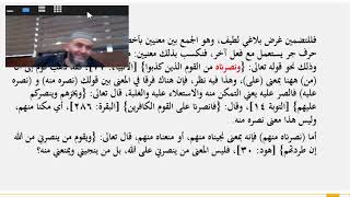 هذا تجاوز عنه. جيد. بس هذا من مختلف شوي يا شيخ رأفت هنا. هنا ناصرناهم القوم على نجيناه وخلصناه من القوم. اما صرنا على يكون هناك جيش مقابل جيش فيغلب جانبا على جانب. ما الفرق بين الاعانة والنصرة؟ النصرة الاعانة في قبال العدو - 00:06:20ضَ