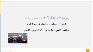هذا كتابي قلمي دفتر سيارتي علمي مثل هذا تضيف وتنسب شيء لاحد يعني. هاي معنى الاضافة. نسبة شيء لشيء. نعم اسمه كما يجر بالحرف يجر باضافة اسم الى اسم اما لقصد التعريف او التخصيص كما في الاضافة المحضة. اذا عندنا الاضافة قسمان ما هما - 00:08:20ضَ