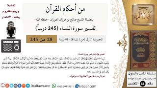 من أحكام القرآن الكريم|28 من 81|سورة النساء-القسم الأول|الآية 26-30|صالح الفوزان|كبار العلماء