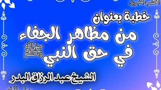 في حقه وعدم المعرفة بقدره ومكانته. صلوات الله وسلامه وبركاته عليه. ومما الجفاء الشنيعة ايها المؤمنون الاقبال على البدع المحدثات والاهواء المخترعات وتعظيمها والذب عنها والاستدلال لها في مقابل اعراض - 00:11:06ضَ