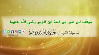 في فتنة ابن الزبير اي في زمن الفتنة التي دارت بين عبد الله ابن الزبير وبين عبد الملك ابن مروان ابن عمر رضي الله عنهما ابى المشاركة فيها ومنع بنيه ان يشاركوا في هذه الفتنة مع احد الطرفين. كل مع الطرفين جميعا وراء - 00:00:00ضَ