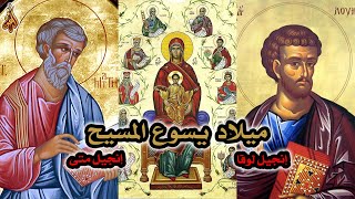 اخر كل واحد منهم بيحكي قصة والقصتين مختلفين بشكل كبير. قال لك بالنسبة لانجيل متى الشخصية الرئيسية في متى هو يوسف المحدد هو الحلم. الحلم بتاع يوسف. مريم غائبة. وكيفية الولادة لا وجود لها. والمزود لا اثر له. لا يروى - 00:22:45ضَ