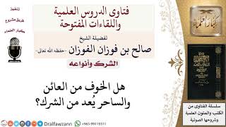 هل الخوف من العائل والساحر يعد من الشرك لا هذا خوف من الاشياء طبيعية فيبتعد عن الساحر ويبتعد عن العاين ويسلم من شرهم نعم - 00:00:00ضَ