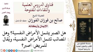 هل الصبر يشمل الامراض النفسية هل المصائب تشمل الامراض النفسية ويقال للمريض اصبر نعم قبر يشمل كل ما يتضرر منه الانسان ويتألم منه الانسان اذا صبر آآ هذا دليل على - 00:00:01ضَ