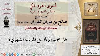 هل تجب الزكاة على المرتب الشهري؟ نعم اذا كان توفر منه وعندك رصيد تجب الزكاة عليه كل سنة اما اذا كان تصرفه في الحال او تصرفه قبل تمام السنة ولا يبقى منه شيء فليس عليك زكاة. نعم - 00:00:00ضَ
