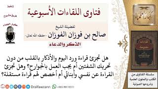 احسن الله اليكم صاحب الفضيلة وهذا السائل يقول هل تجزئ قراءة ورد اليومي والاذكار بالقلب من دون تحريك الشفتين ام يجب العمل بالجوارح؟ وهل تجزئ وهل تجزئ القراءة عن نفسي وابنائي؟ ام اخصص لهم قراءة مستقلة - 00:00:00ضَ