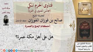 هل على اهل مكة عمرة نعم الصحيح ان عليهم عمرة صحيح ان اهل مكة وغيرهم عليهم عمرة لكن لا يحرمون بالعمرة من مكة وانما يخرجون الى الحل ويحرمون بها - 00:00:00ضَ